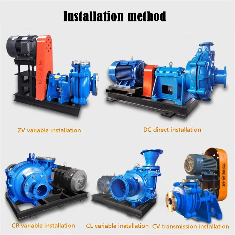 The ZH pump has a replaceable anti-wear metal lining or rubber lining, and the impeller is made of anti-wear metal or rubber material. The shaft seal can be packing seal or centrifugal seal. The outlet position of the pump can be installed and used according to the need to rotate eight different angles at 45 ° C intervals.